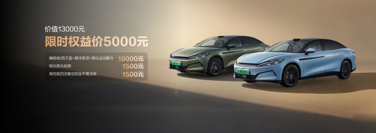 在产品之外,比亚迪特别推出丰厚外观限时选装权益。其中,汉L原价13000元的外观套装(含橄榄绿/西子蓝车色、悬浮黑顶、黑化运动套件、哑光黑化轮辋、性能四活塞定钳金甲黄涂装),限时权益价仅需5000元!唐L价值10000元的橄榄绿/悬浮黑顶,限时权益价3000元;价值6000元的琉光银车色,限时免费赠送。现在订购汉L或唐L,即可享受高达15000元的超级置换礼。(以上权益截至12月31日)